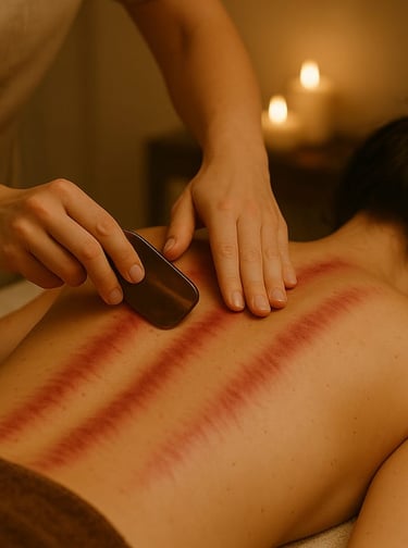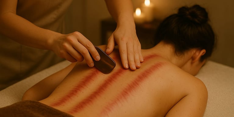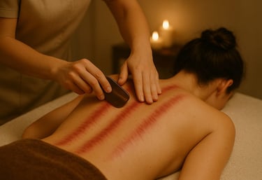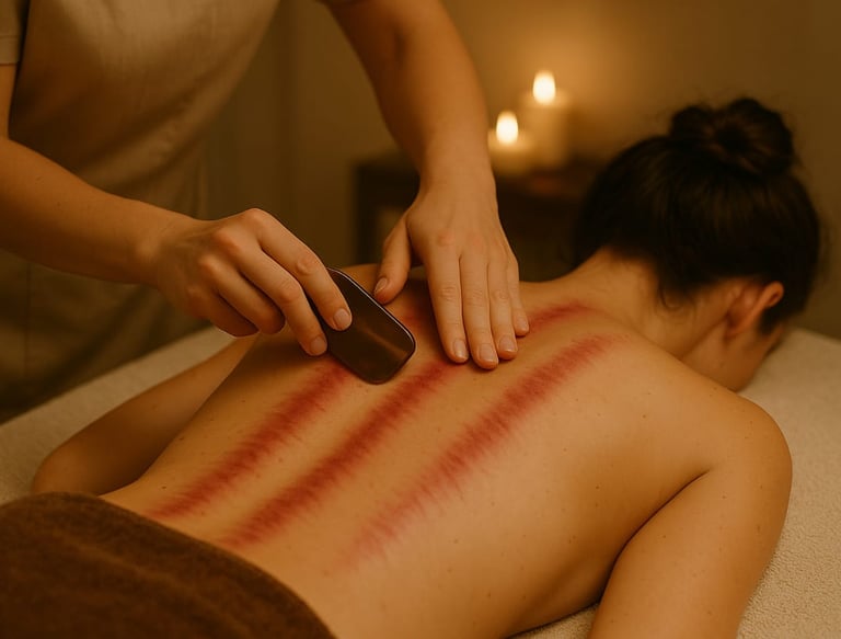 Terapi tradisional untuk melancarkan peredaran darah dan meredakan masuk angin dengan menggosok minyak dan koin pada permukaan kulit.
