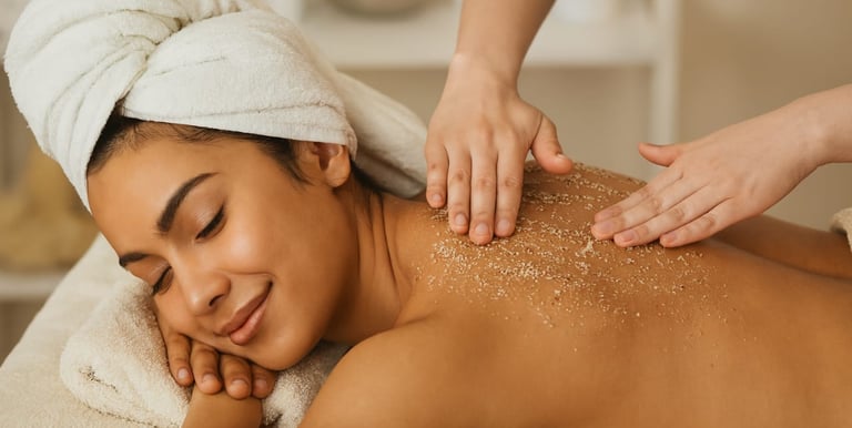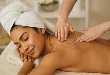 Perawatan scrub seluruh tubuh untuk mengangkat sel kulit mati dan membuat kulit lebih halus, cerah, dan lembut.