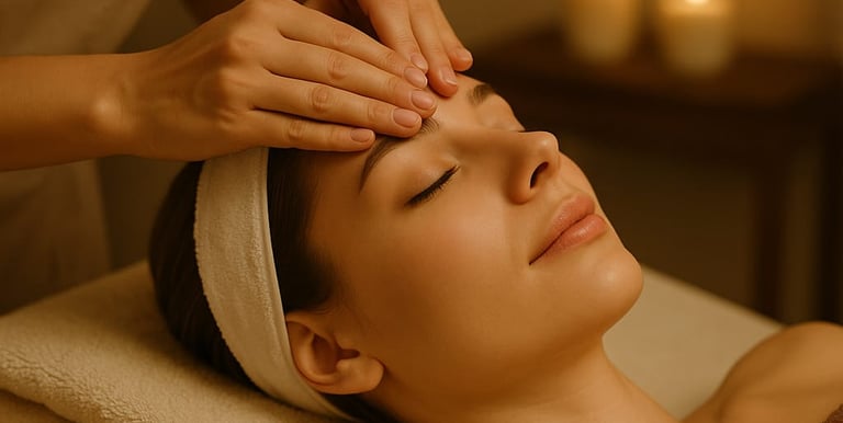 Teknik pijat titik wajah untuk melancarkan peredaran darah, membuat wajah lebih rileks, segar, dan bercahaya.